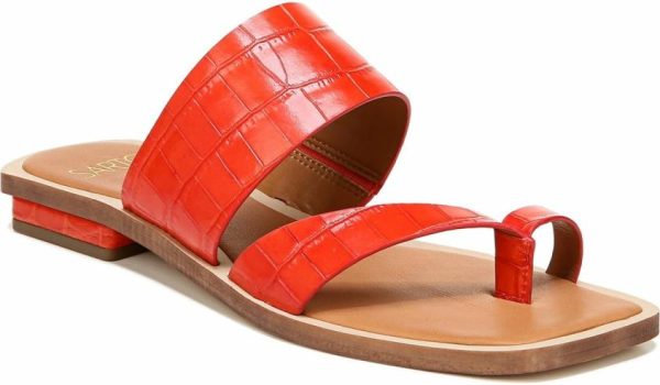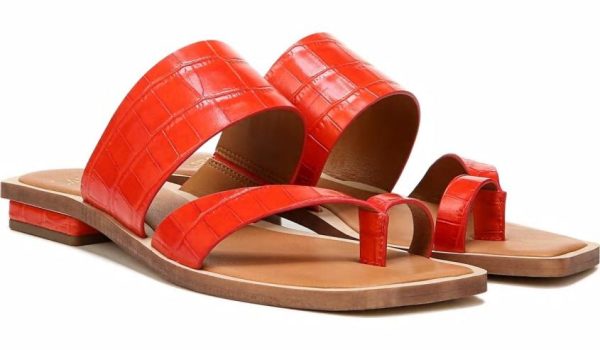 A slide sandal crafted with eco-conscious materials features a chic toe loop for a stunning update.