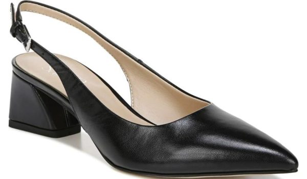 Set on a sturdy block heel, a pointy toe slingback pump exudes feminine allure.