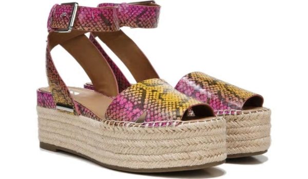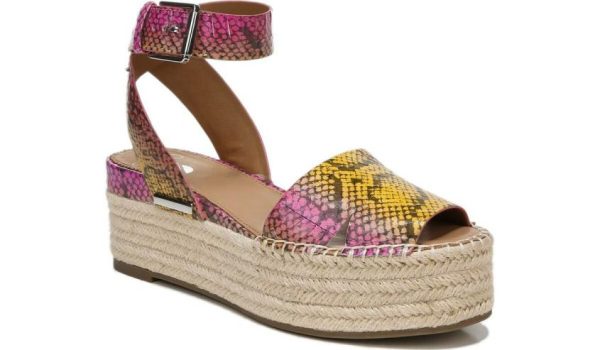 A chunky espadrille sandal features a sleek crisscross ankle strap for endless styling options.