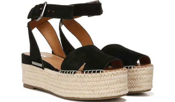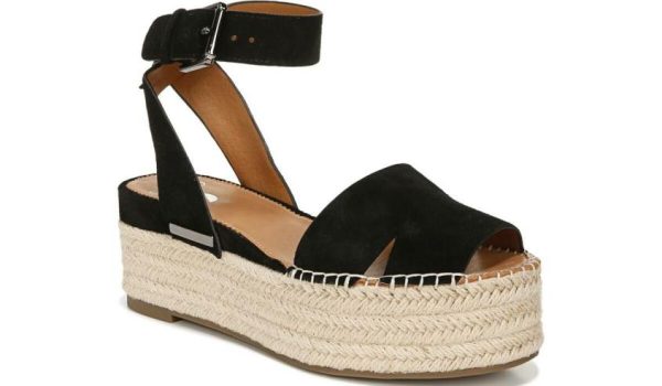 A chunky espadrille sandal features a sleek crisscross ankle strap for endless styling options.
