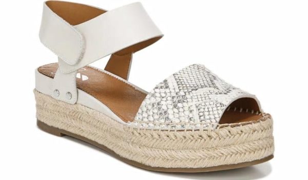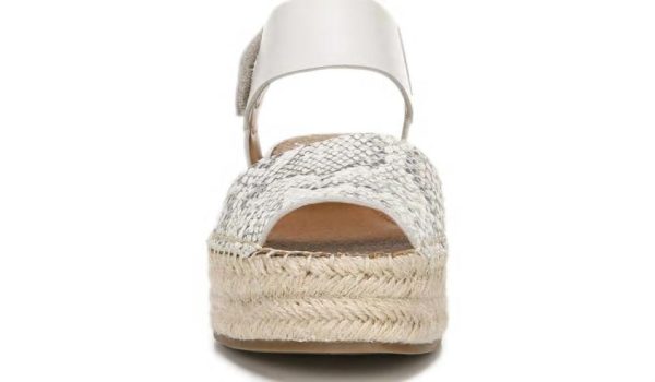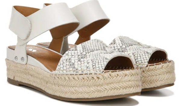 Play with texture in this beautifully crafted espadrille sandal. Leather or suede upper. Peep toe, heel sling strap with hook-and-loop closure. Metallic stud accents and woven espadrille detailing. 2 inch platform espadrille heel.